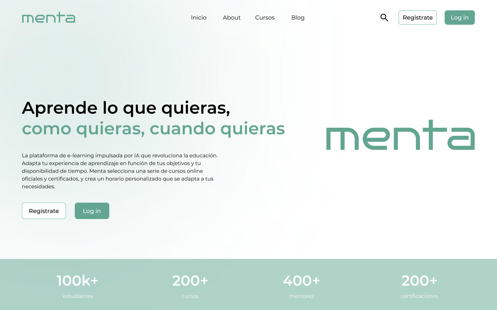 A new way of learning: Menta is the first academy where the content is 100% personalized and generated using Artificial Intelligence.